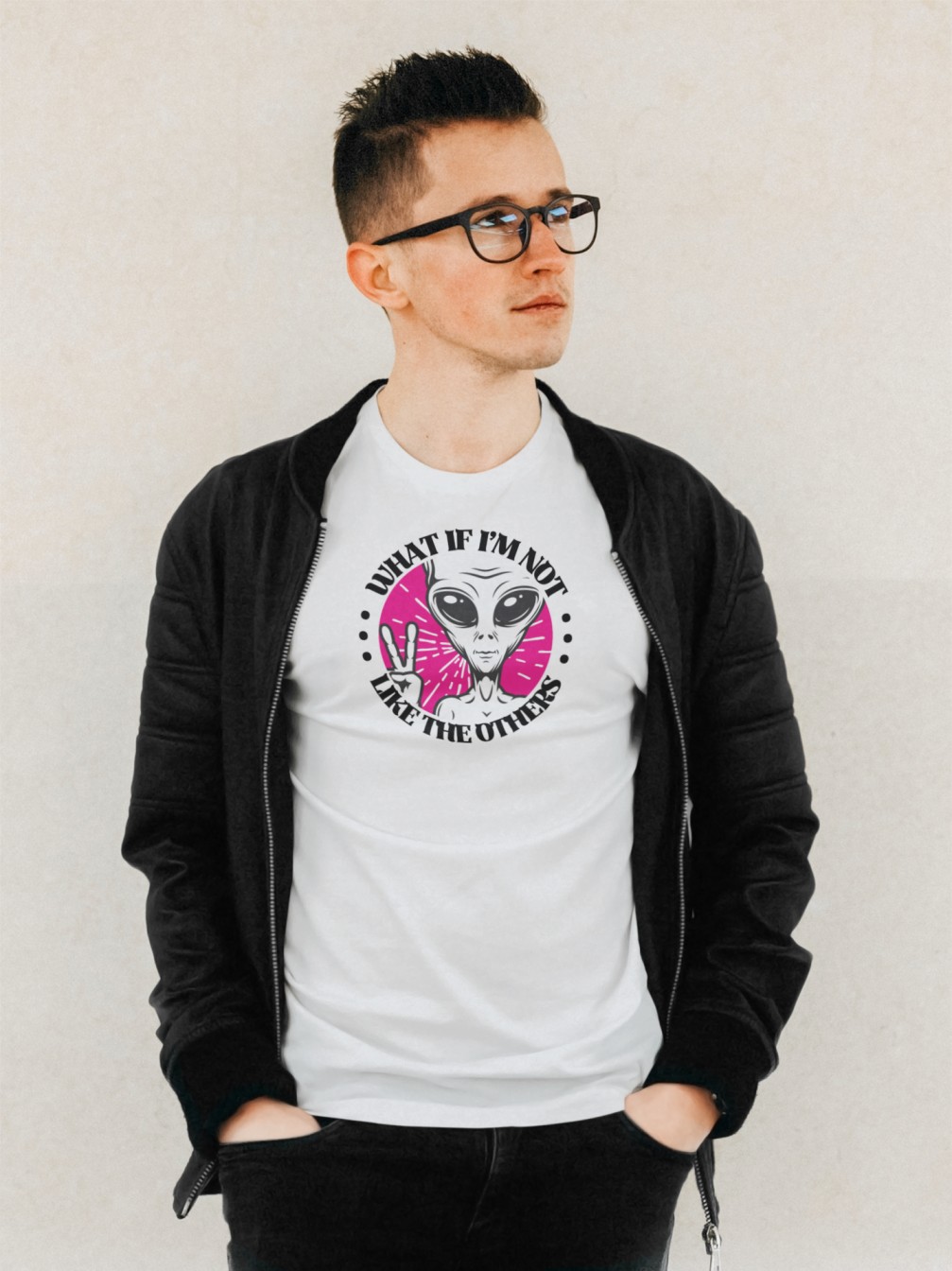 This super comfy t-shirt will have others guessing what your real motives are! Fun alien motif is sure to get attention and this t-shirt is soft and lightweight, with the right amount of stretch.